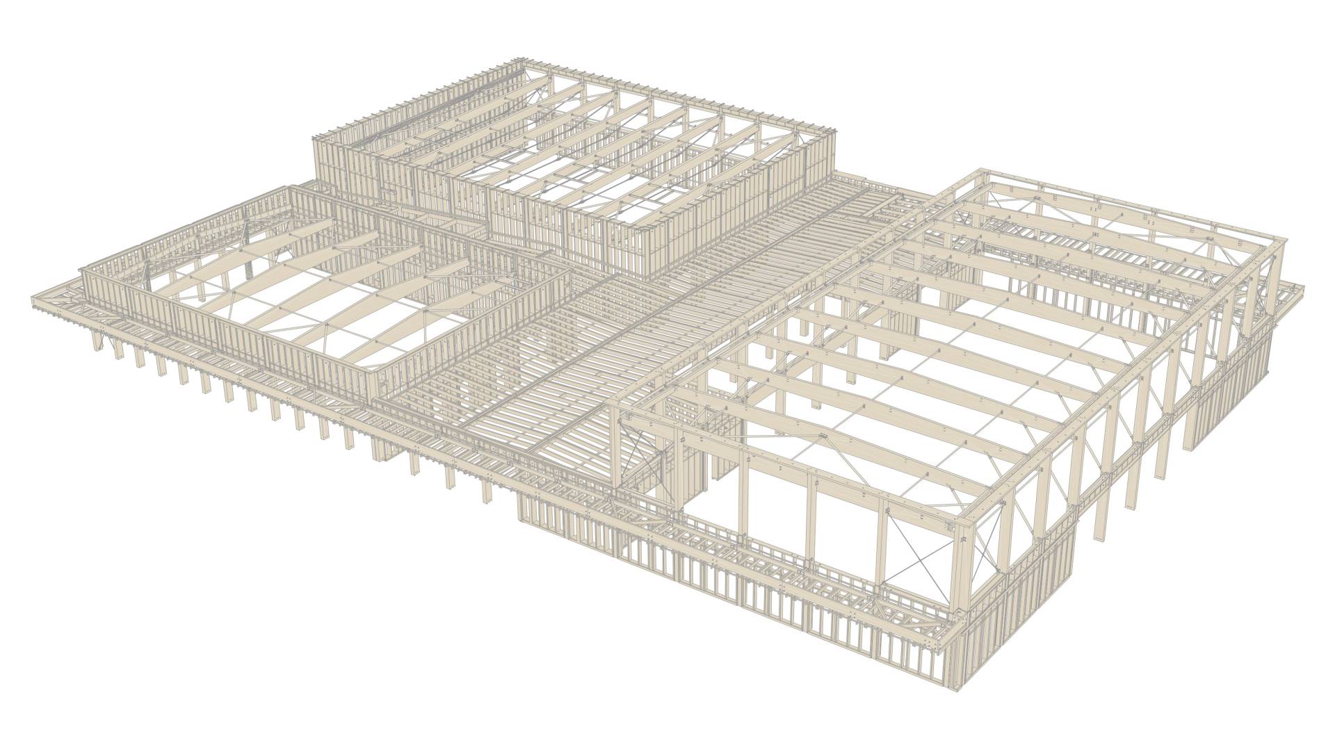 Equipement sportif à Parçay-Meslay - Axonométrie de la charpente bois