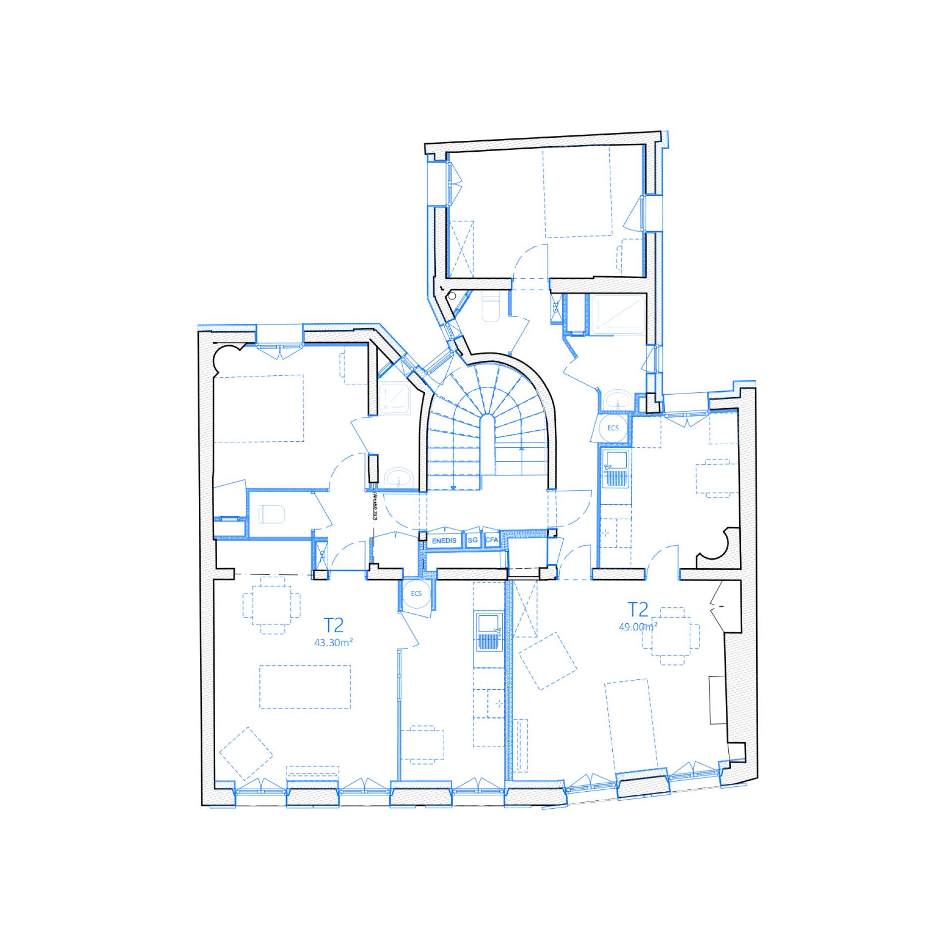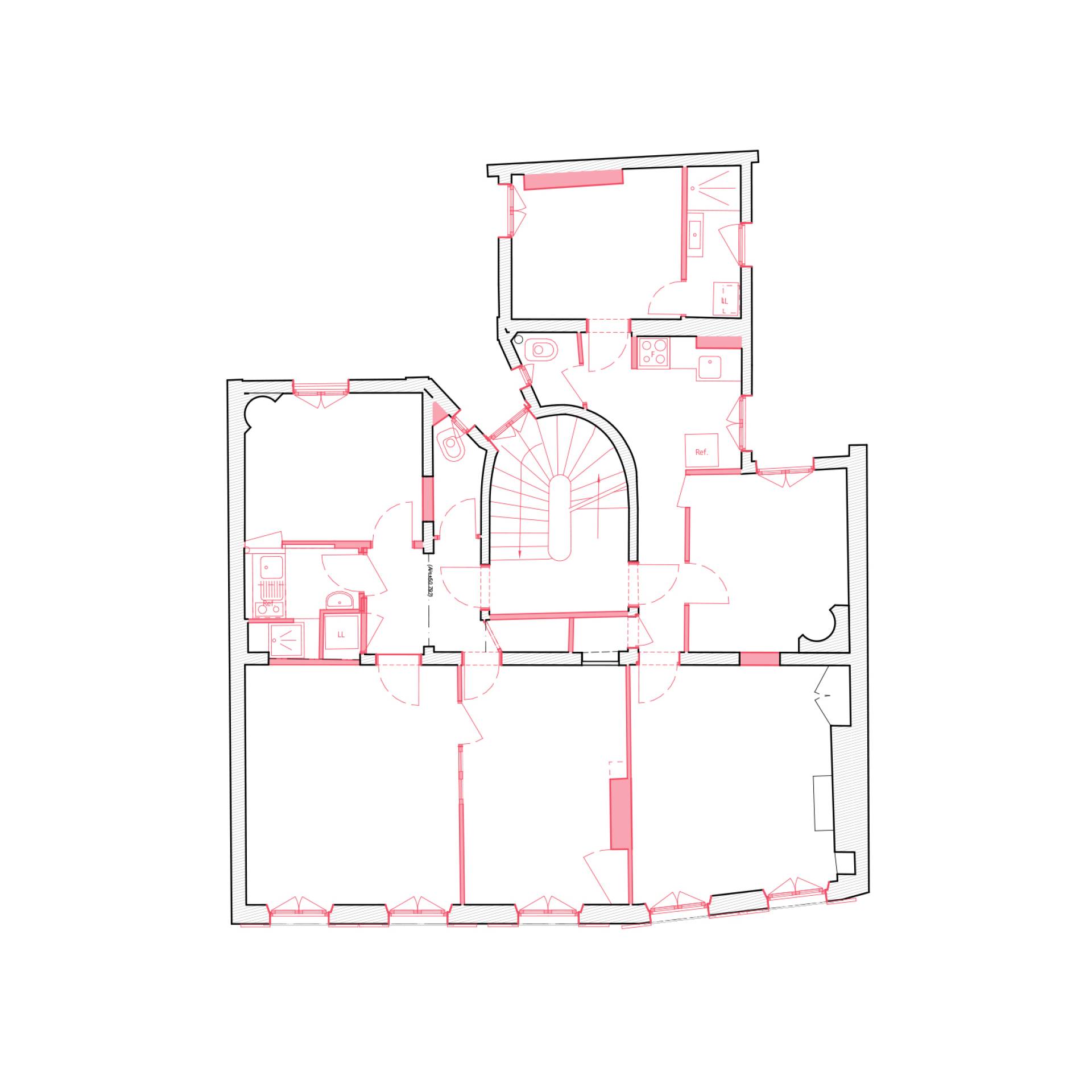 Réhabilitation de 12 logements et 2 commerces à Paris Ve - Plan R+4 démol